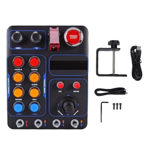 Tangxi Simulator Race Central Control Box, 19 Buttons 30 Programmable Options RGB Backlight USB Port with Toggle, for Engine Start Stop PC Racing Wheels and Simulator Games