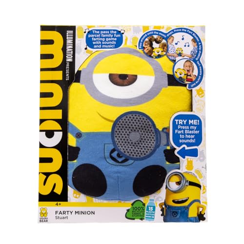 MINIONS toys, teddy Stu holding fart blaster gun, this is a pass the parcel game that farts & vibrates when the music stops, Stu from Perfect parties or games night