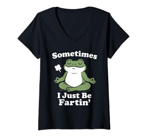 Womens Sometimes I Just Be Fartin' Yoga Frog Meditating V-Neck T-Shirt
