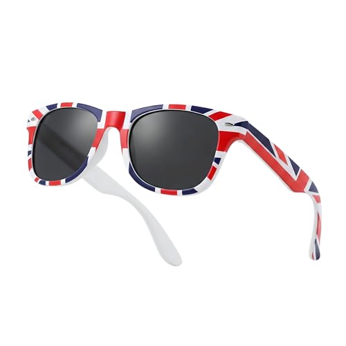 Komonee Drifter Sunglasses UV400 Protection GB Union Jack UK Classic Style Retro Sun Shades Eye Glasses Unisex For Men Women Cycling Sports Travel – Lightweight Frame Fashion Eyewear Outdoors