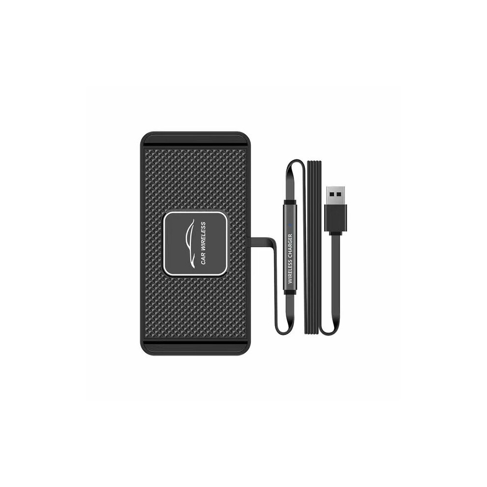 (Black)Non-slip silicone pad car fast wireless charger for iPhone/Android mobile phone Qi 15W