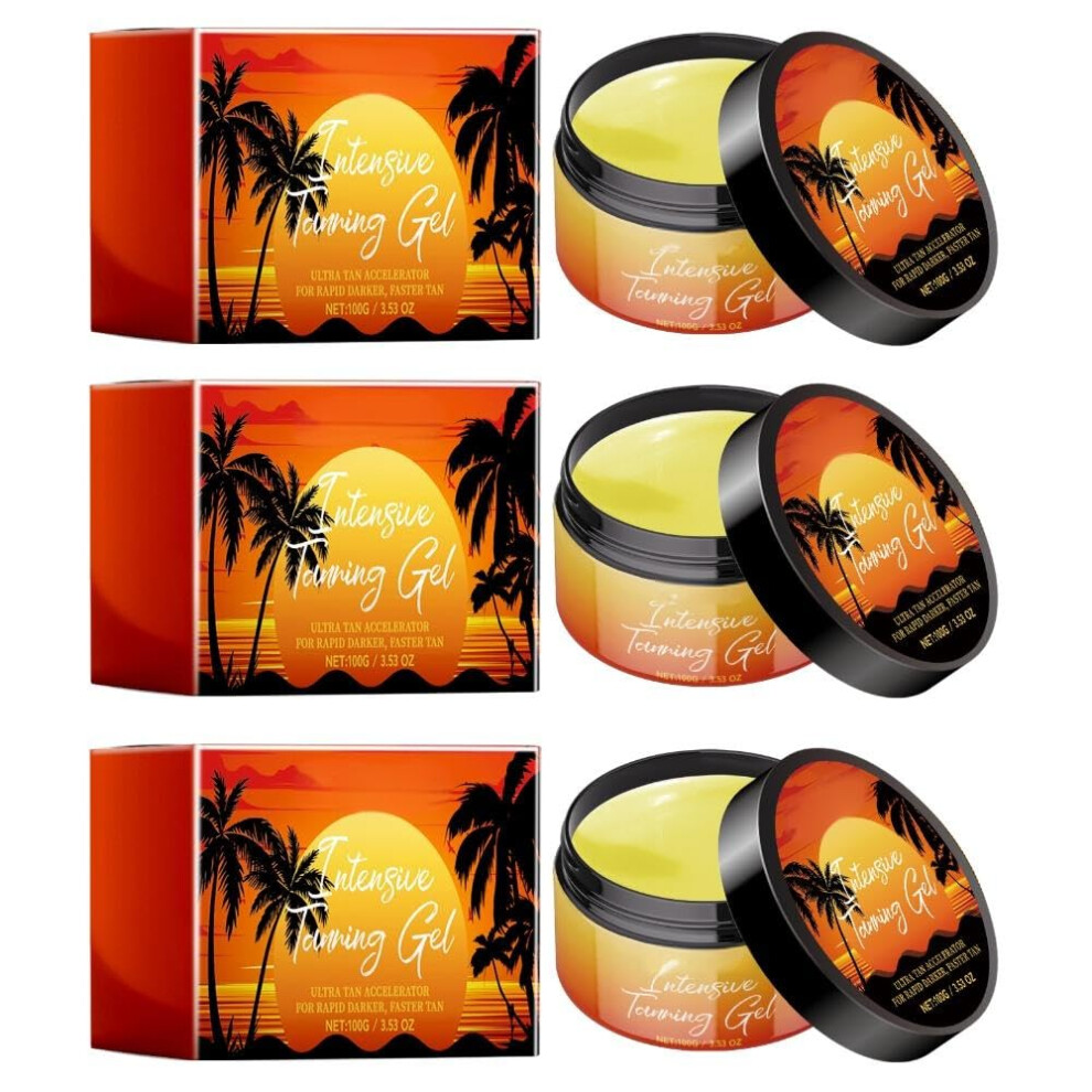 Tanning Accelerator Gel with Shea Butter and Coconut Oil for Fast Natural Bronzing, Deep Hydration, NonGreasy Outdoor Tan 3.53oz Yellow 3Pack