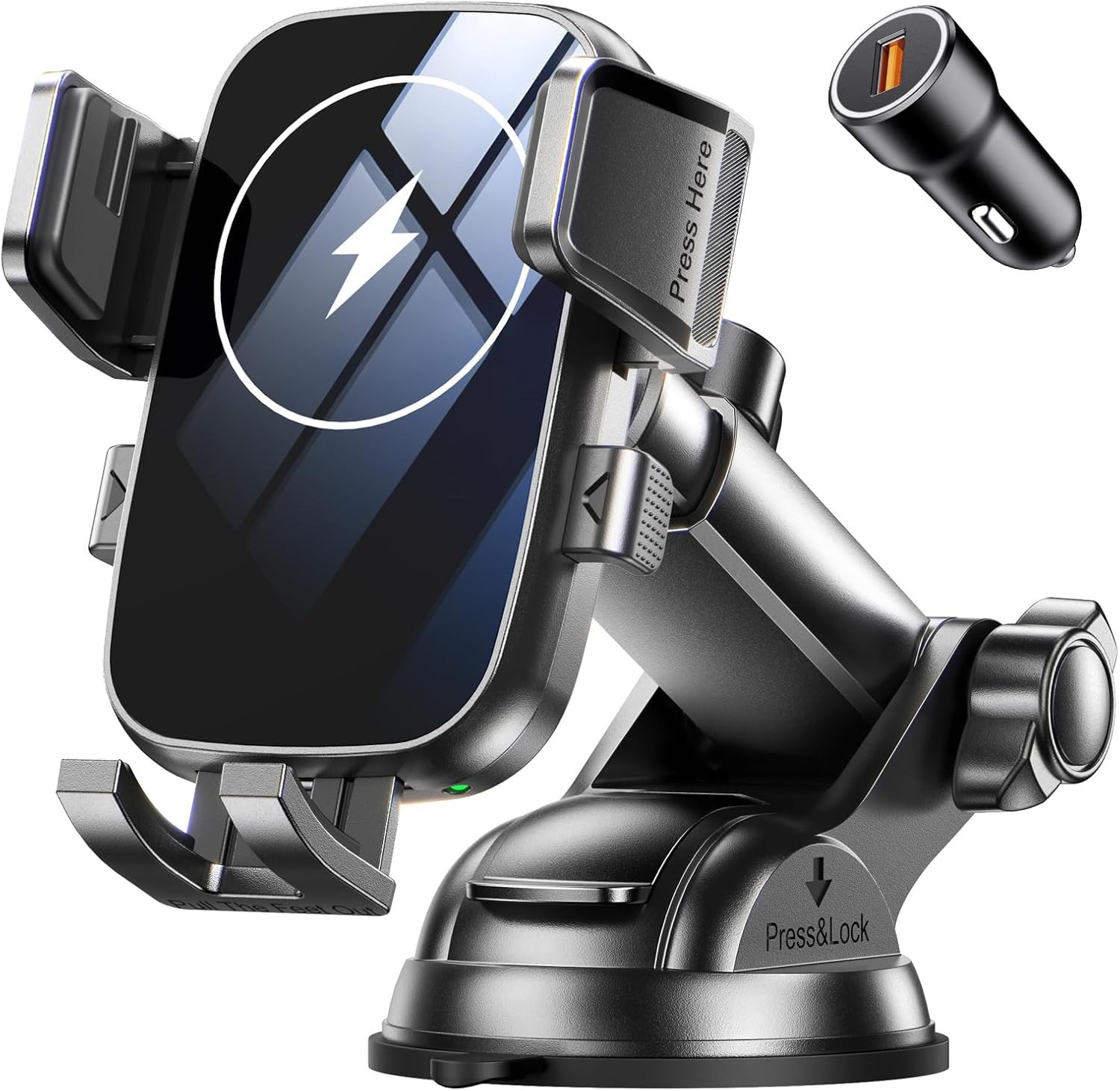 Mohard Car Phone Holder Wireless Charger, [15W Fastest Charging] Wireless Car Charger Mount, Upgraded Suction CarWirelessCharger for Dash/Windshield, Compatible with iPhone 17/16/15, Galaxy S25, etc