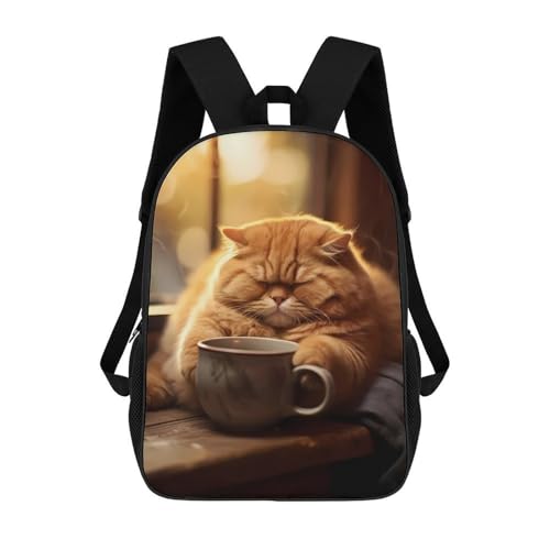 sinyumoney Kids School Backpack Fat Cat Morning Coffee Pet Teen Fashion Backpack Casual Rucksack Boy Girl Teen School Bag 3D Printed Backpack 17inch