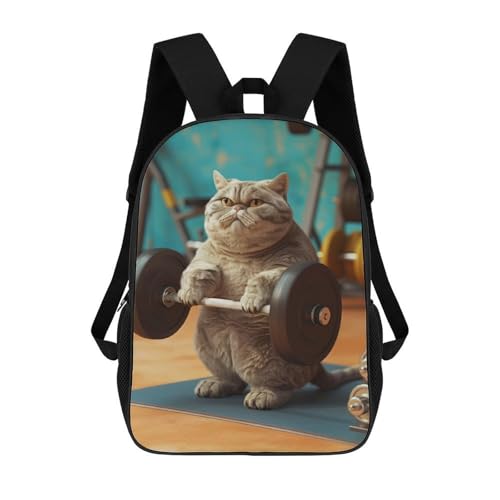 sinyumoney Kids School Backpack Fat British Shorthair Cat Teen Fashion Backpack Casual Rucksack Boy Girl Teen School Bag 3D Printed Backpack 17inch