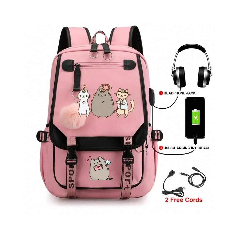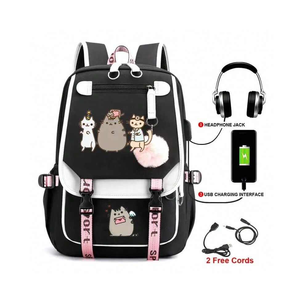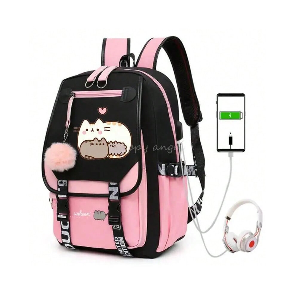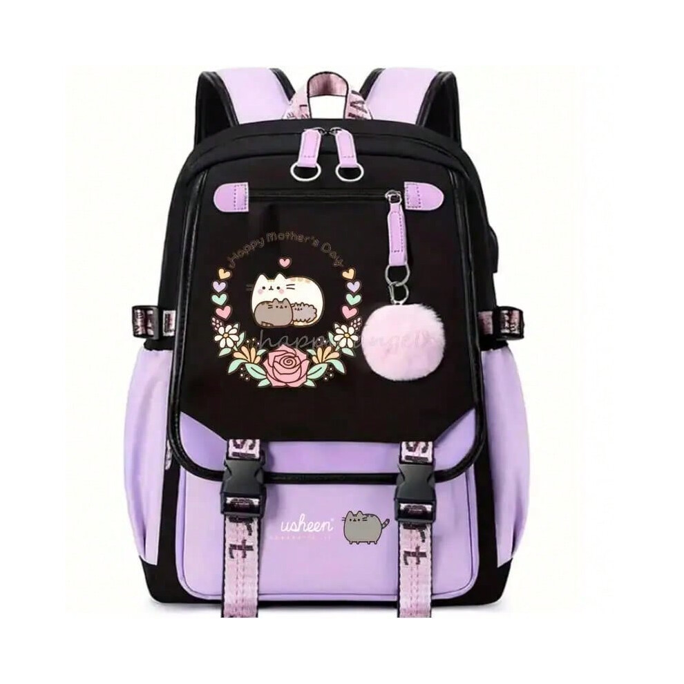 (picture color) Hot Fat Cat Backpack Girl School Bag for Teenage College Wind Women SchoolBag High Student Bag Purple Canvas Bundle Usb Backpac