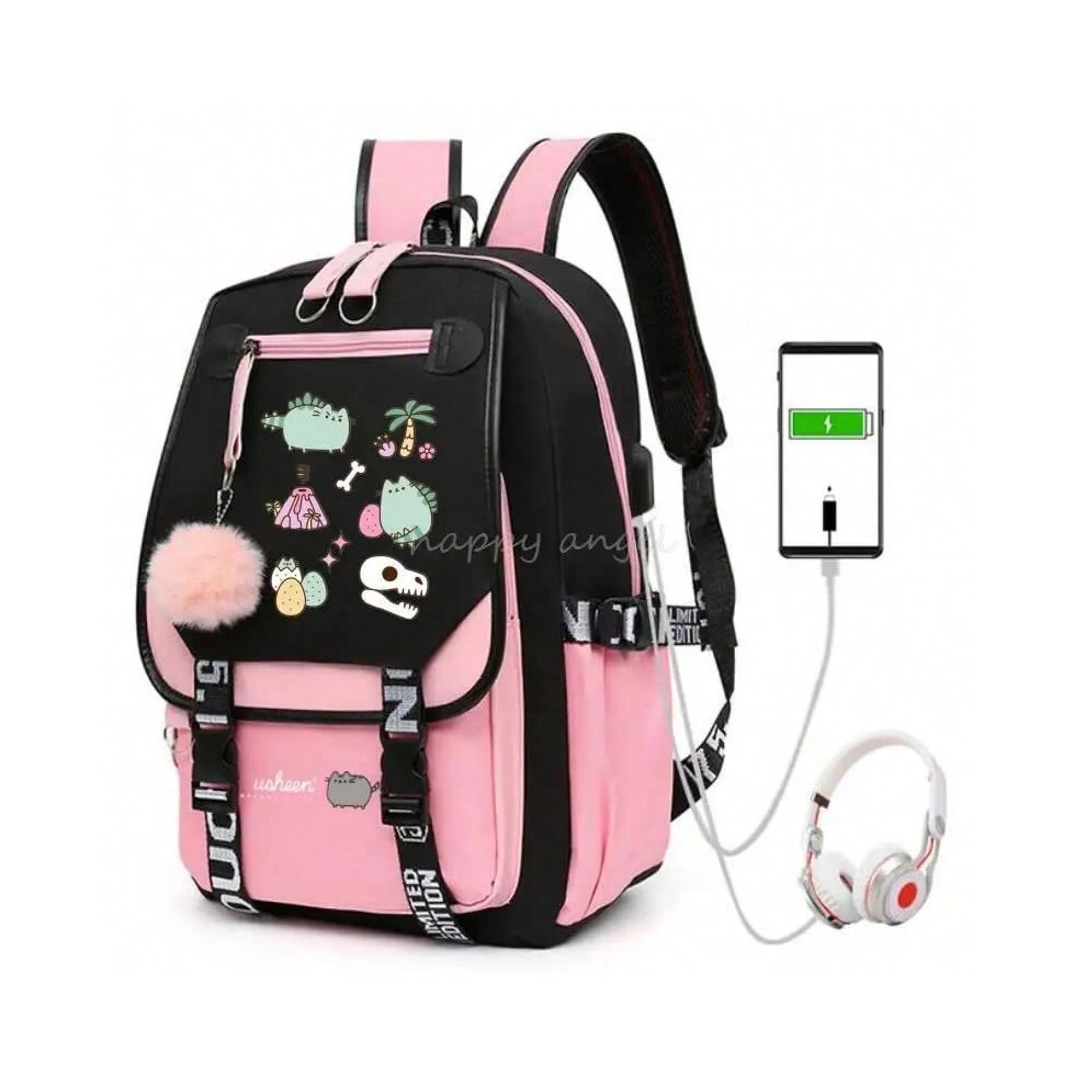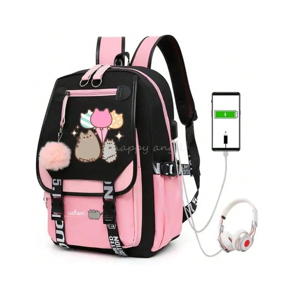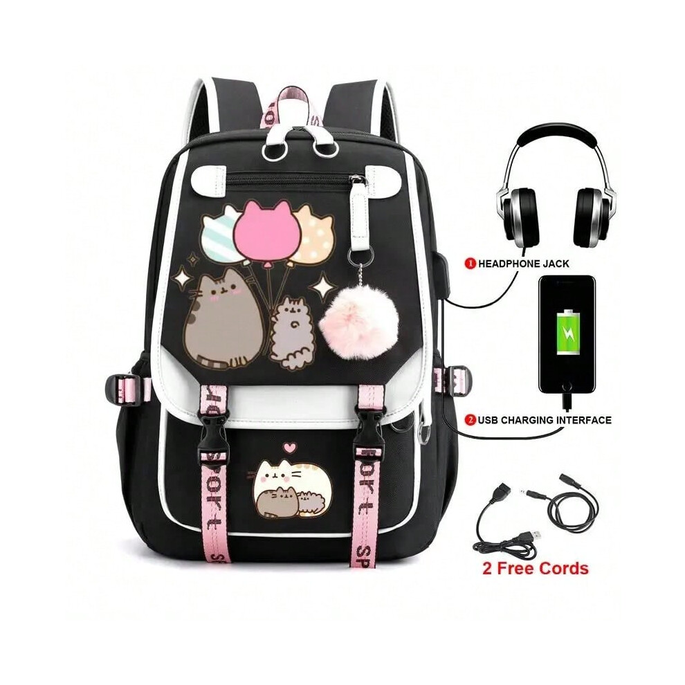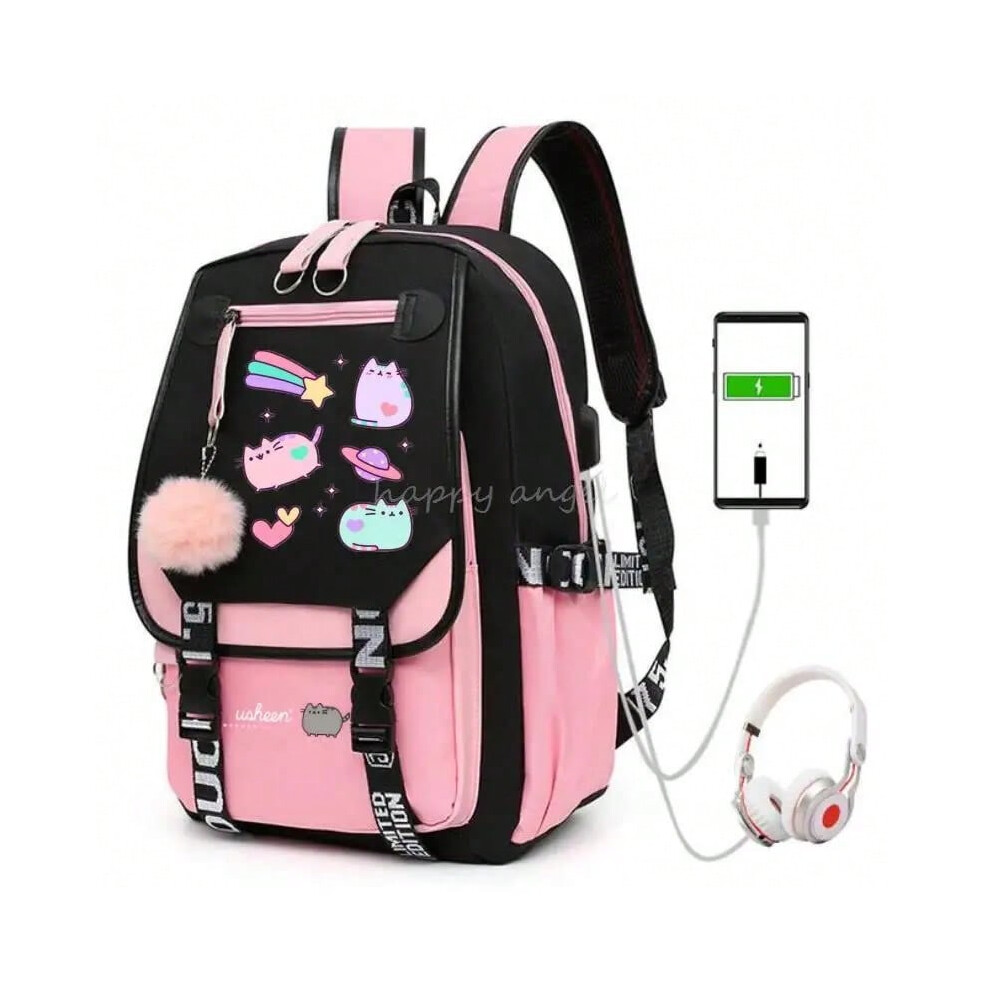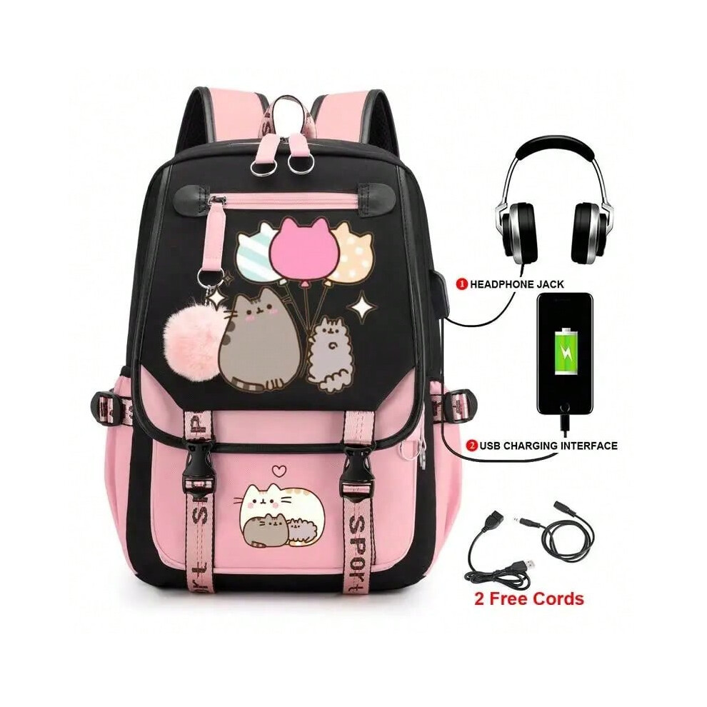 (picture color) Hot Fat Cat Backpack Girl School Bag for Teenage College Wind Women SchoolBag High Student Bag Purple Canvas Bundle Usb Backpac