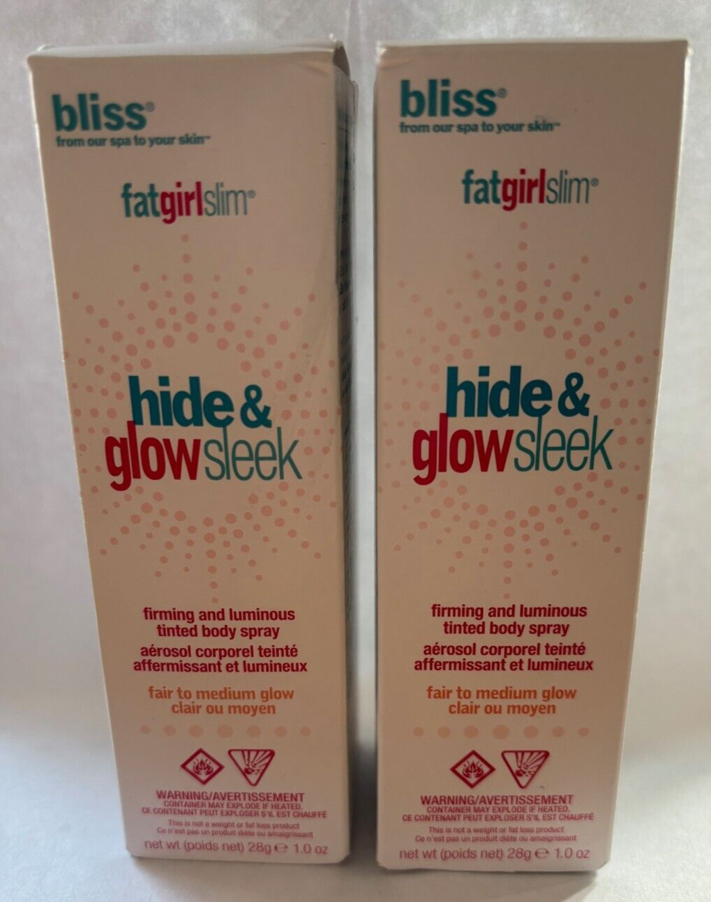 Bliss Fat Girl Slim hide & glow sleek firming luminous tinted body spray 28g x 2