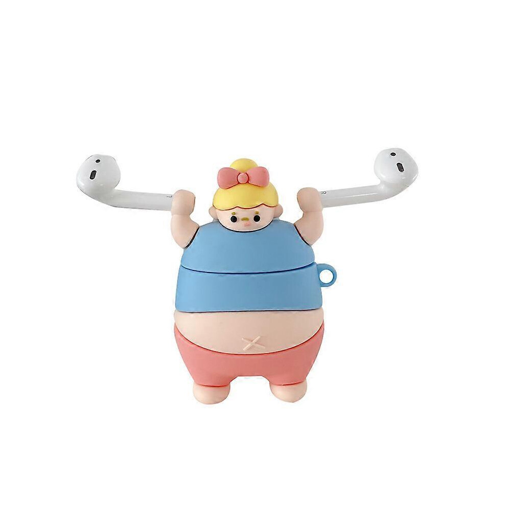 (As show, One size) Compatible with Airpods 1/2 headphone case (pink little girl), creative cartoon weightlifting, fat boy and girl silicone protectio