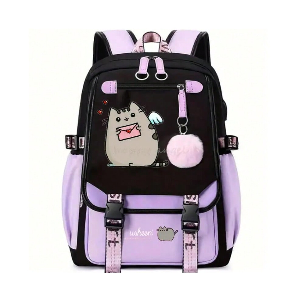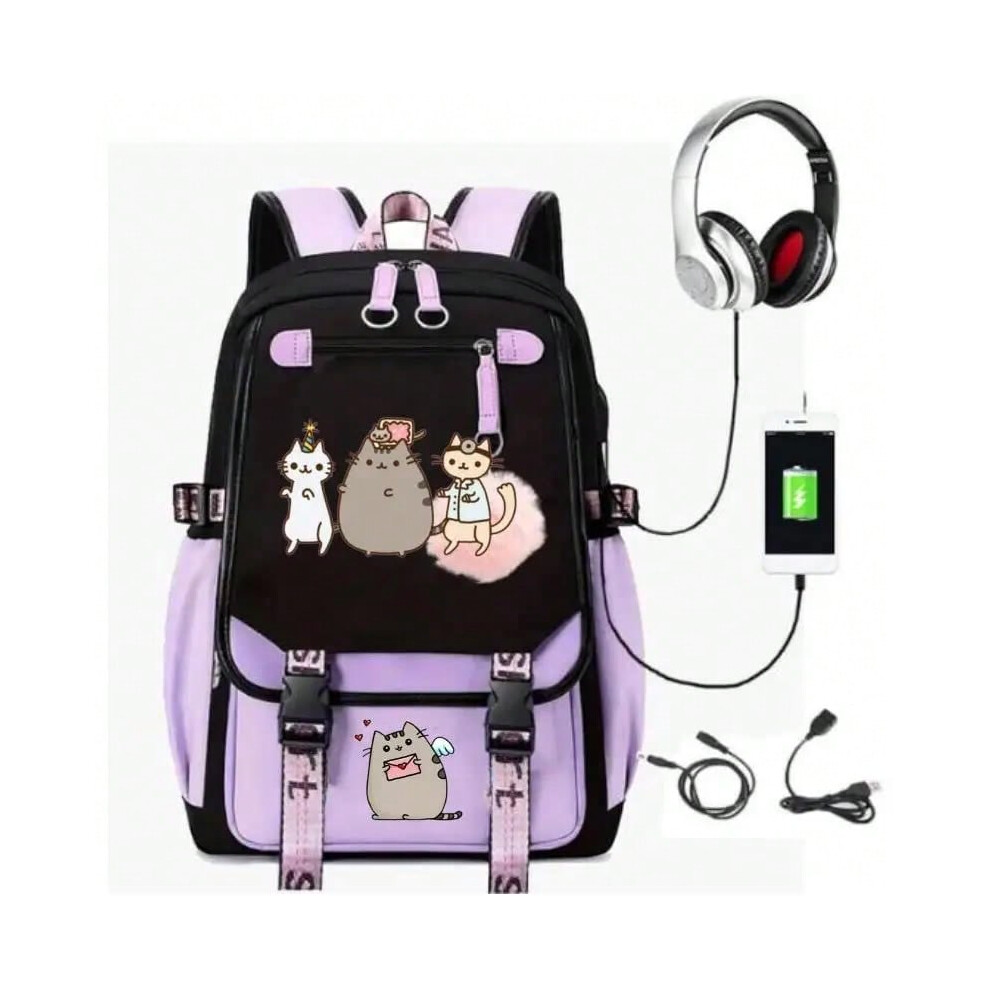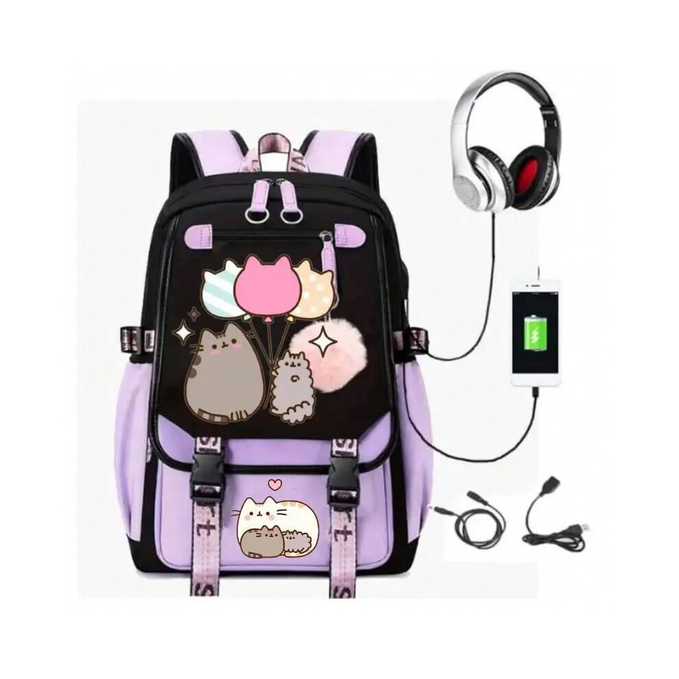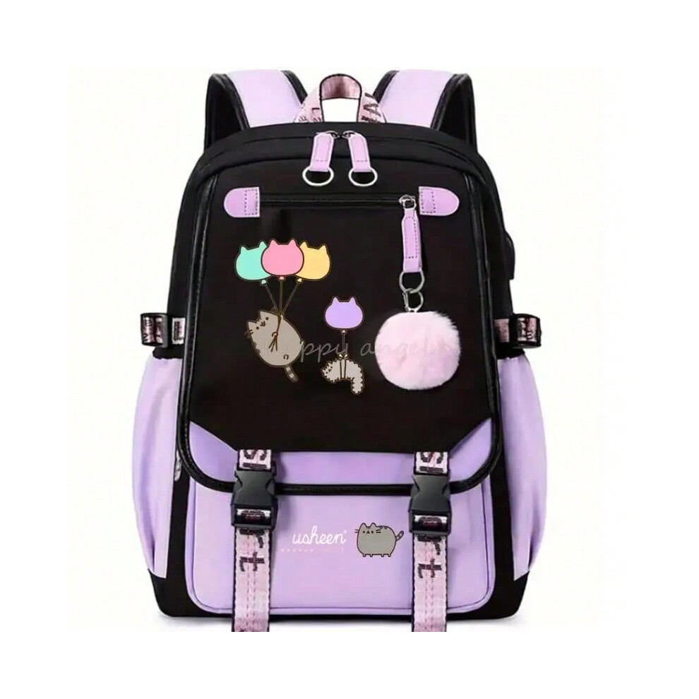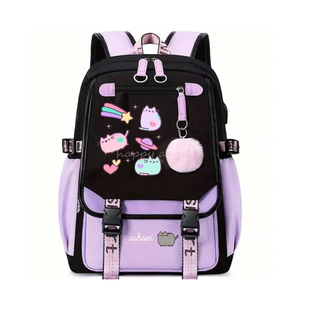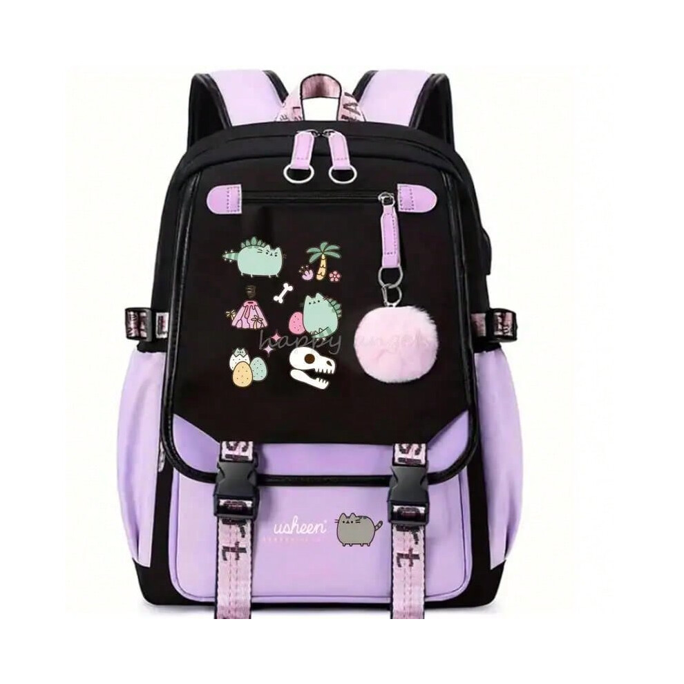 (picture color-1) Hot Fat Cat Backpack Girl School Bag for Teenage College Wind Women SchoolBag High Student Bag Purple Canvas Bundle Usb Backpac