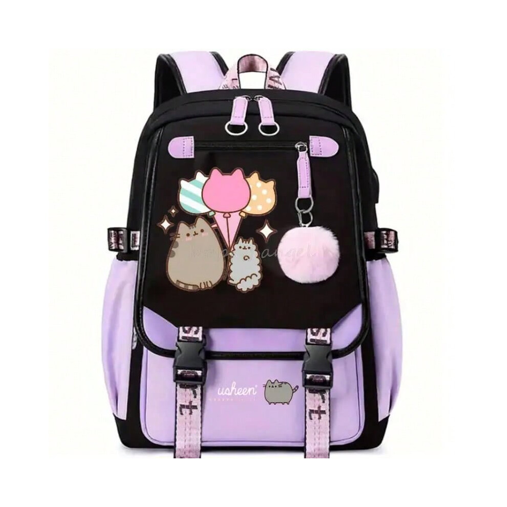 (picture color-3) Hot Fat Cat Backpack Girl School Bag for Teenage College Wind Women SchoolBag High Student Bag Purple Canvas Bundle Usb Backpac