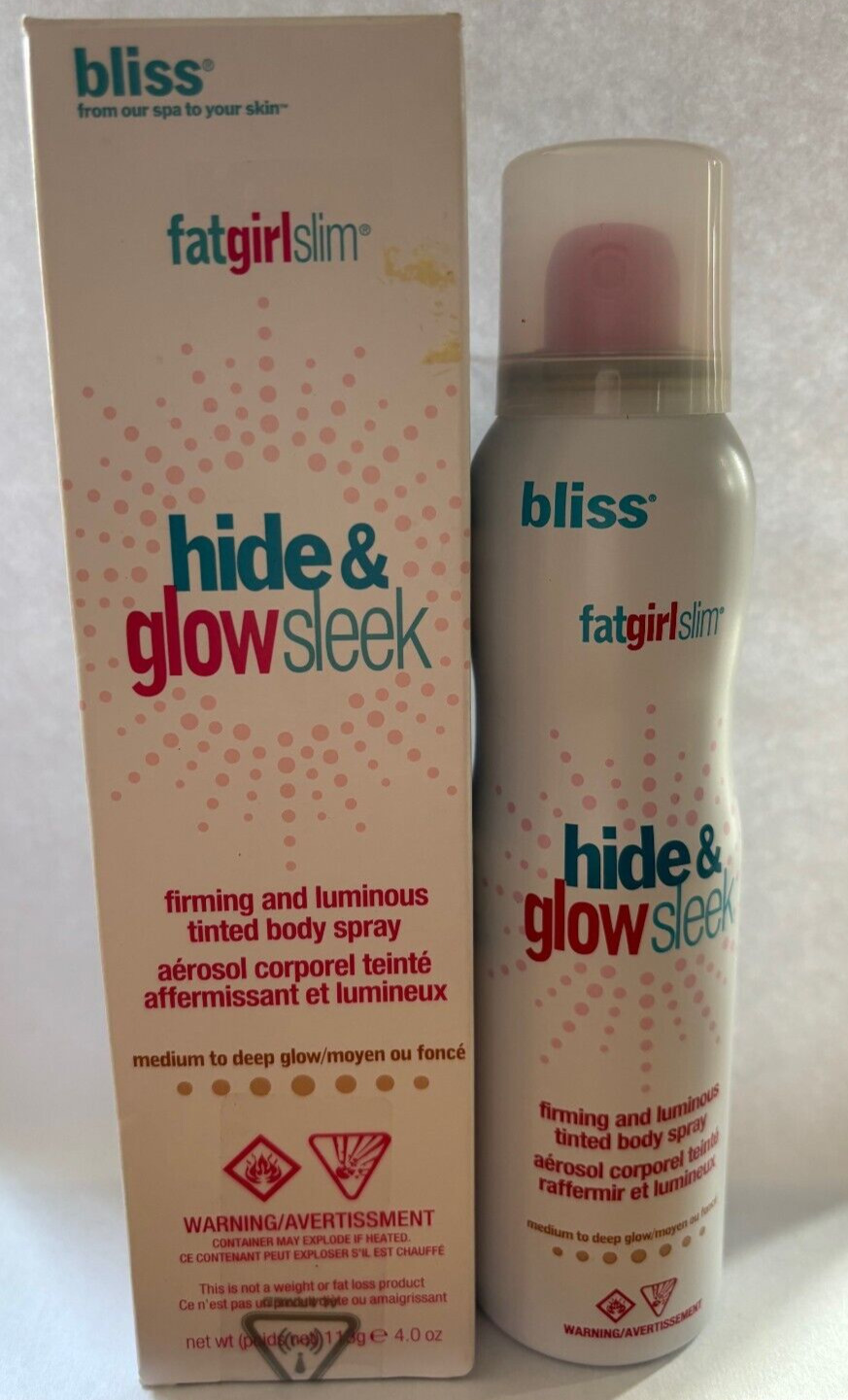 Bliss Fat Girl Slim hide & glow sleek firming luminous tinted body spray 113g