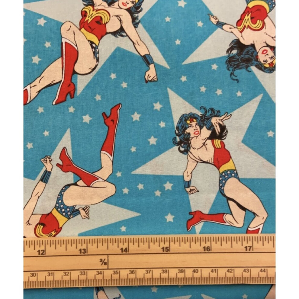 Fat Quarter Dc Heroines Girl Power Wonder Woman On Blue 100% Cotton Fabric