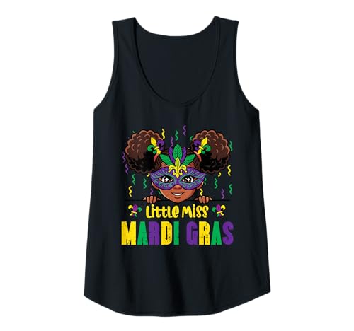 Womens Little Miss Mardi Gras Black Girl Fat Tuesday Girls Kids Tank Top