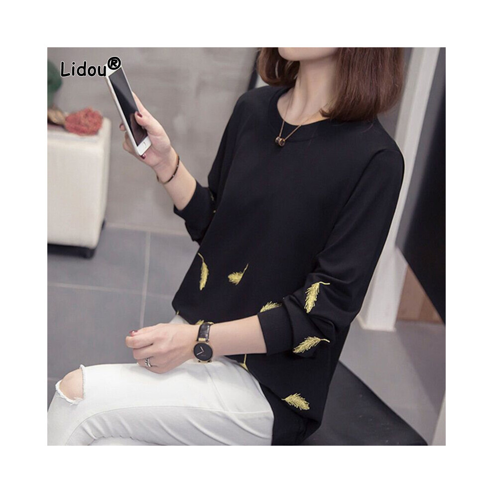 Fat Girl's Large Women's Casual Style Sweater Pullover Long Sleeve Top Embroidery Style Autumn Style Without Plush Female