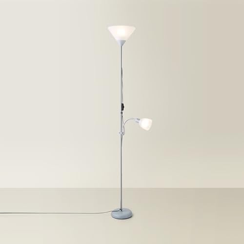 MiniSun | Modern Metallic Silver 2 Way Mother/Father and Child Floor Lamp | Floor Lamps & Torchieres, Home Décor & Improvement Essential | Includes LED Bulbs