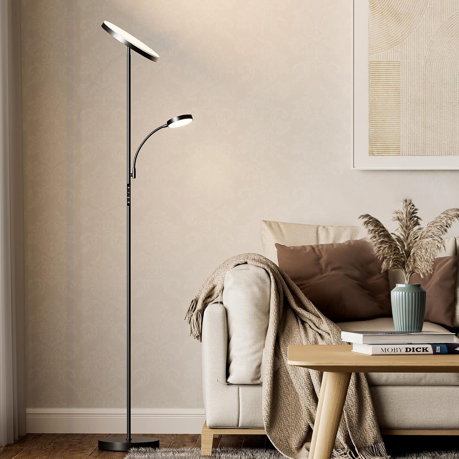 Uplighter Floor Lamp with Reading Lamp, 2700K-6500K Color Temperature, 42W Mother/Father Parent & Child Modern Floor Lamp, Dimmable Standing Lamp, Re