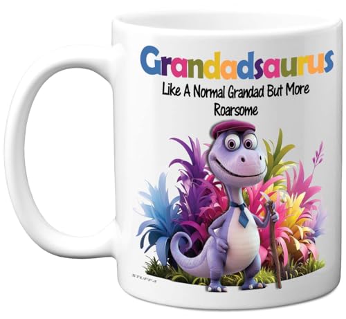Stuff4 Grandad Gifts - Roarsome Grandadsaurus Mug - Happy Birthday Gifts for Grandad from Grandson Granddaughter, Dinosaur Father's Day Presents, 11oz Ceramic Dishwasher Safe Premium Mugs