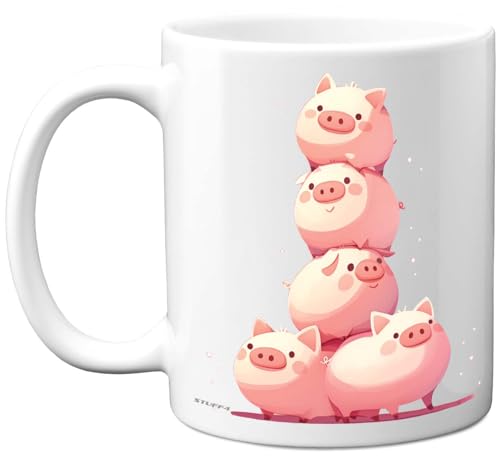 Pig Gifts - Pyramid of Animals - Happy Birthday Gifts Pig Mother's Day Presents, Gift Father's Day, 11oz Ceramic Dishwasher Safe Premium Mugs