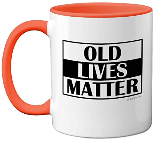 Stuff4 50th 60th 70th Birthday Gifts for Men Women - Old Lives Matter Coffee Mug - Dad Mum Grandma Grandad Birthday Gifts, Father's Day Present, 11oz Ceramic Dishwasher Safe Orange Mugs Made in UK