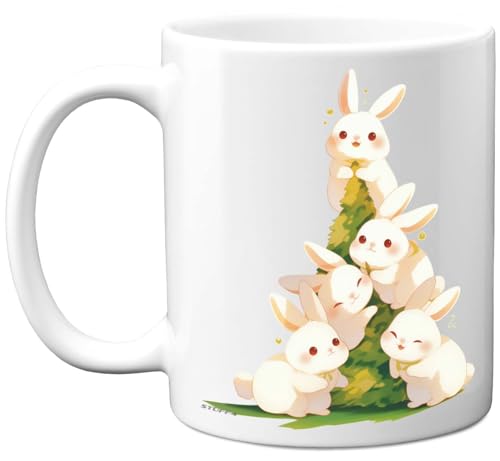 Rabbit Gifts - Pyramid of Animals - Happy Birthday Gifts Rabbit Mother's Day Presents, Gift Father's Day, 11oz Ceramic Dishwasher Safe Premium Mugs