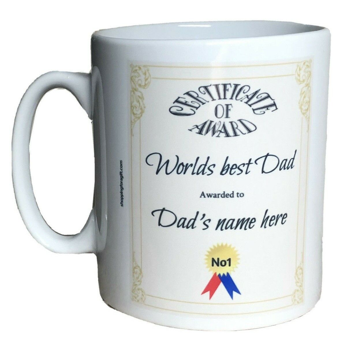 Personalised Worlds Best Dad Award Mug. ADD DADS NAME. Mugs For Fathers Day