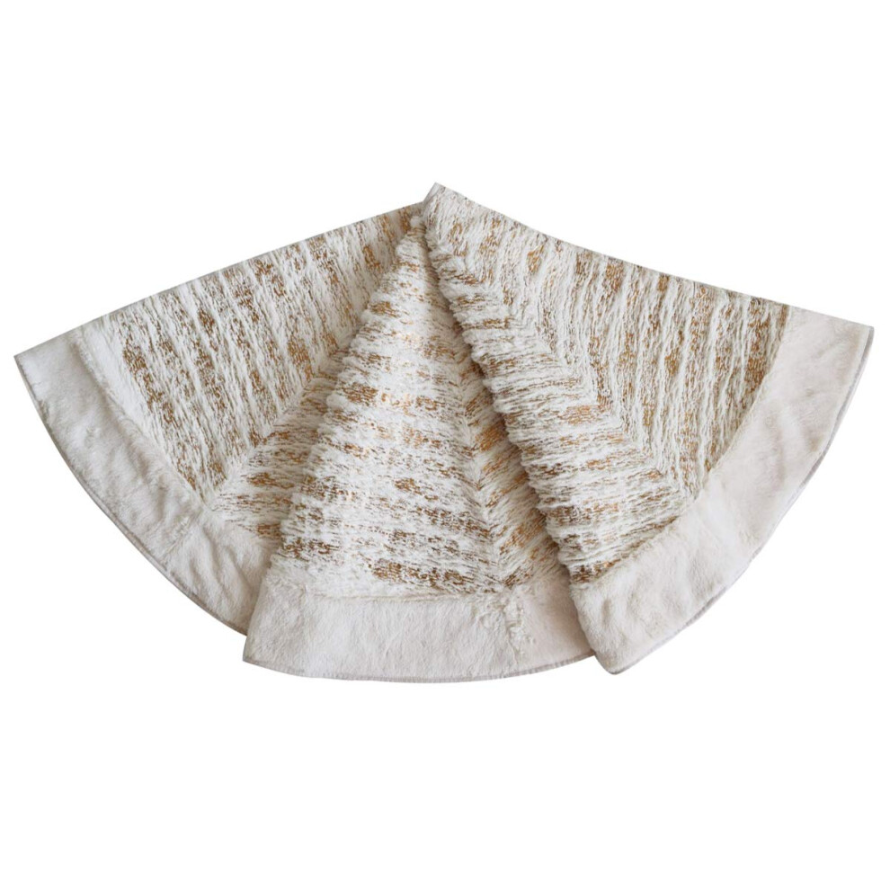 Fennco Styles Holiday Brushed Foil Print Faux Fur Christmas Tree Skirt 72 Inch - Gold Metallic Design Tree Skirt for Home Holiday Tree Indoor and Sp