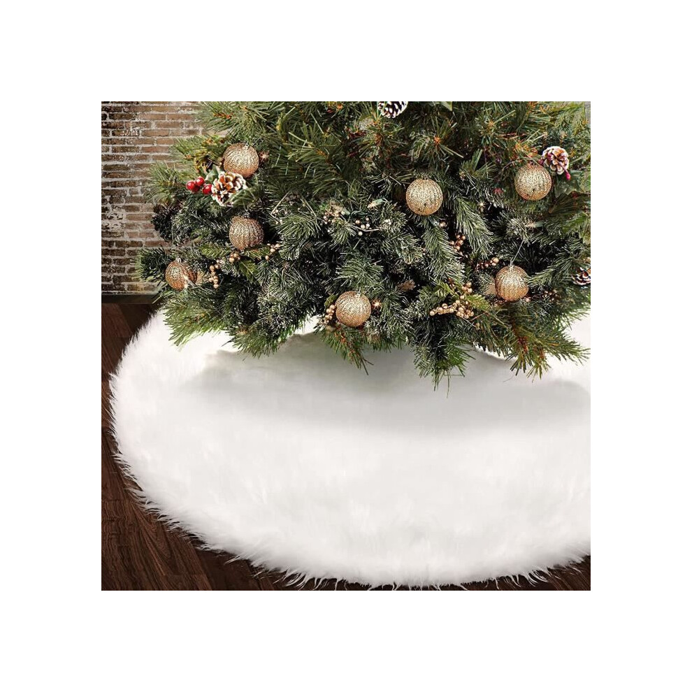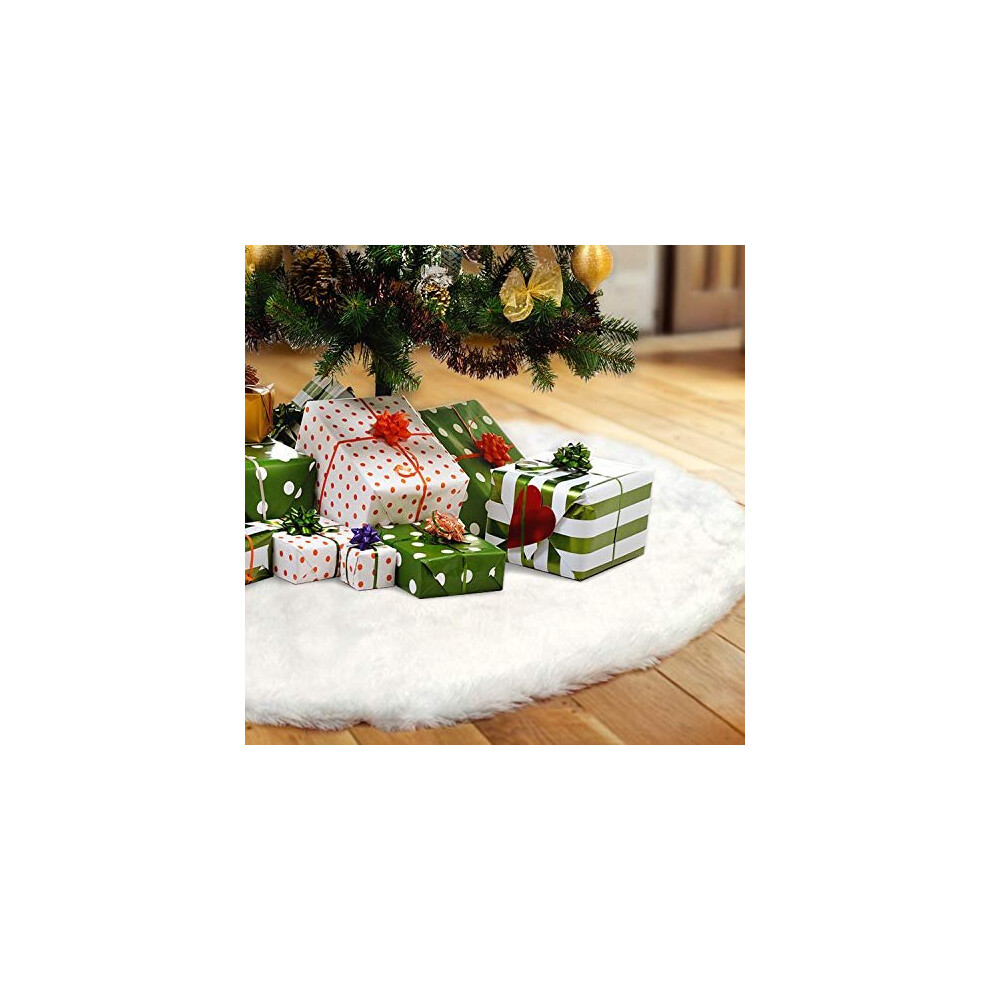 Sattiyrch Faux Fur Christmas Tree Skirt 36"" White Xmas Decorations for 6ft Christmas Tree (White 36in)