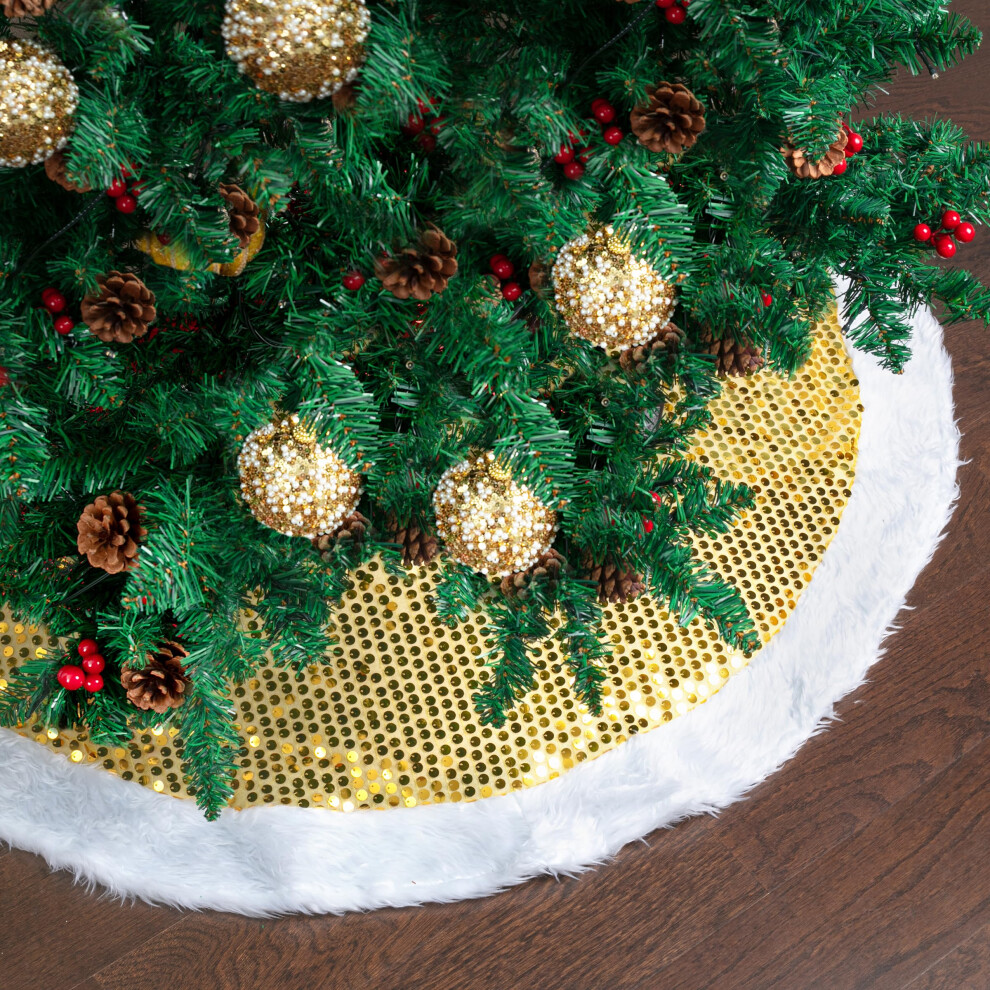 Mr. Pen- Christmas Tree Skirt 48 Inches Sparkling Gold Sequin with White Faux Fur Christmas Tree Skirts White Tree Skirt Christmas Skirt Tree Xmas