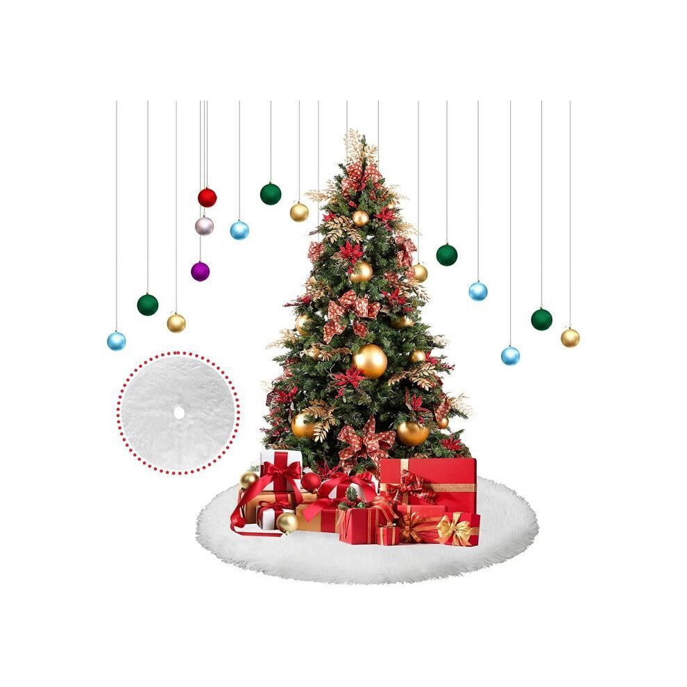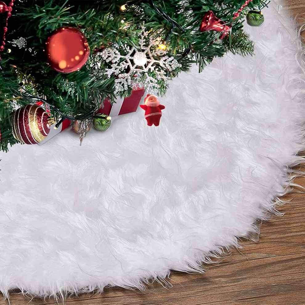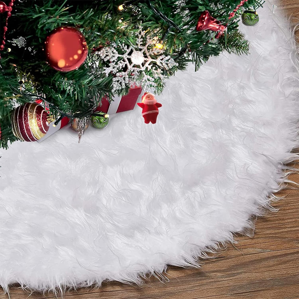 White Plush Christmas Tree Skirt 47 Inch, 122cm Snow White Faux Fur Christmas Tree Skirt Christmas Tree Skirt[142]