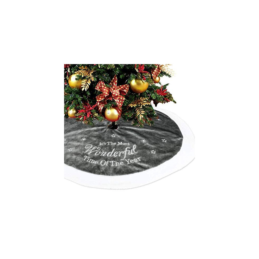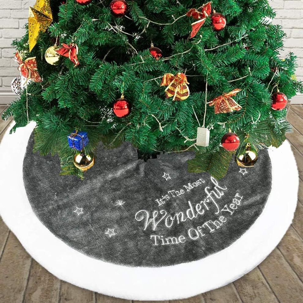 Grey Christmas Faux Fur Tree Skirt 90 cm with Round Trim Xmas Tree Skirt Base C