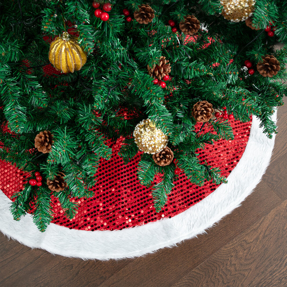 Mr. Pen- Christmas Tree Skirt 48 inches Sparkling Red Sequin with White Faux Fur Christmas Tree Skirts White Tree Skirt Christmas Skirt Tree Xmas
