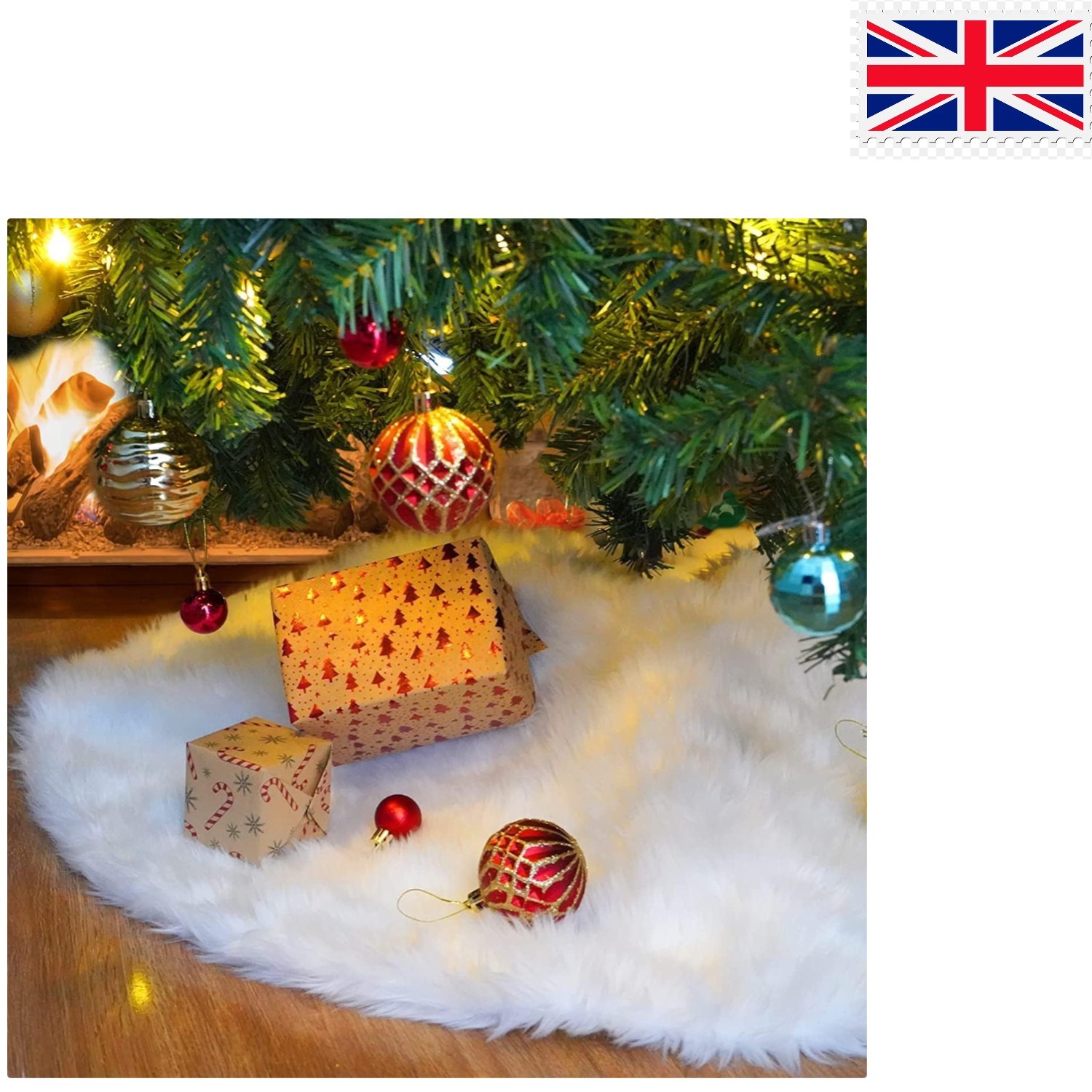 Christmas Tree Skirt, 90 cm White Faux Fur Christmas Tree Base Cover Plush Carpet Christmas Tree Base Cover[7]