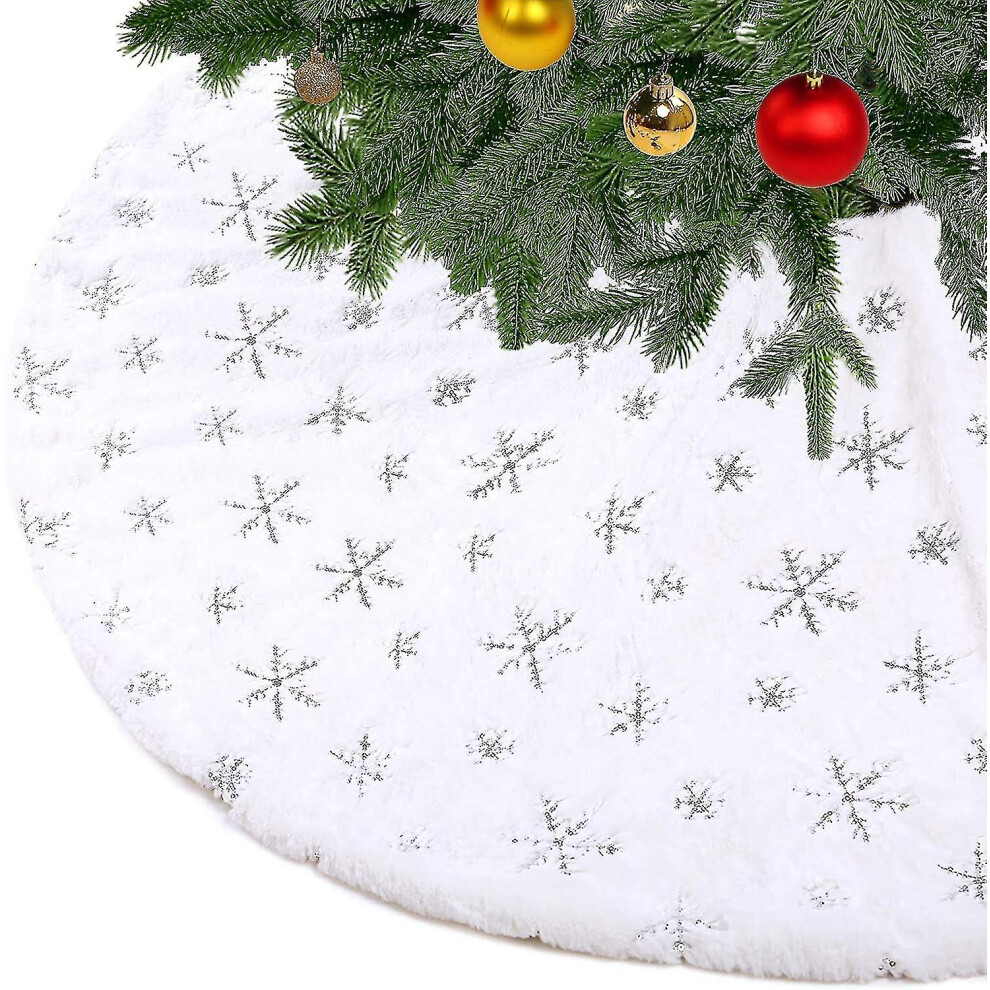 Mr. Pen- Christmas Tree Skirt 48 inches White Faux Fur Christmas Tree Skirts with Silver Snowflakes White Tree Skirt Christmas Skirt Tree Xmas Tre