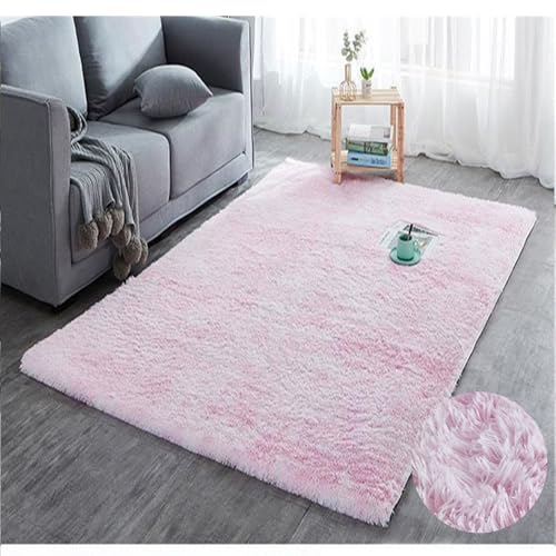 Highdi Fluffy Rugs Living Room, Soft Shaggy Rug, Non-Slip Faux Fur Rugs Beige Long Plush Carpet, Washable Rugs for Bedroom Kids Living Room Home Decor, Modern Tie Dye (100x140cm,Pink)