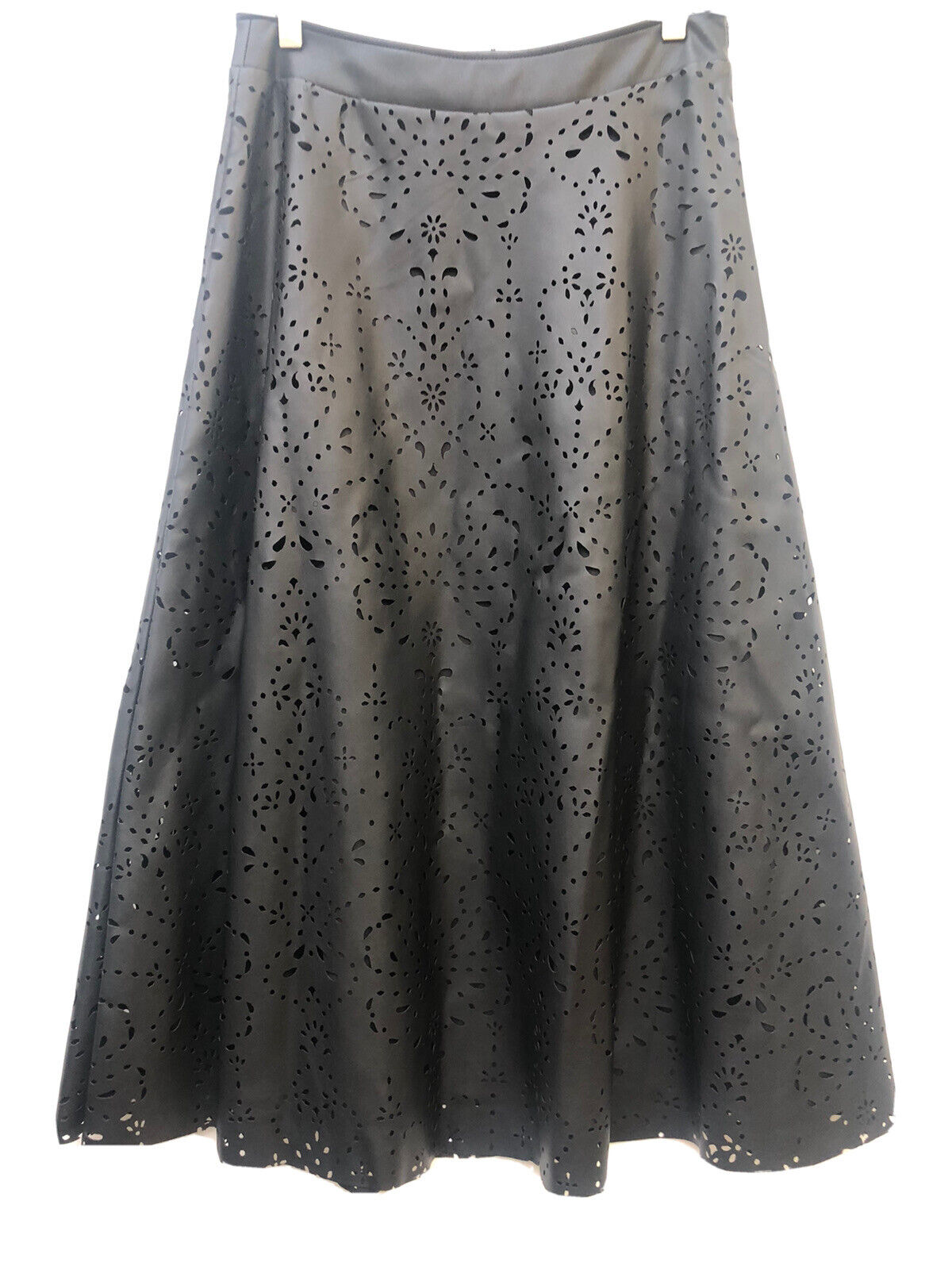 Zara Black Faux Leather A Line Midi Skirt Cut Work Size Small REF 3046 275