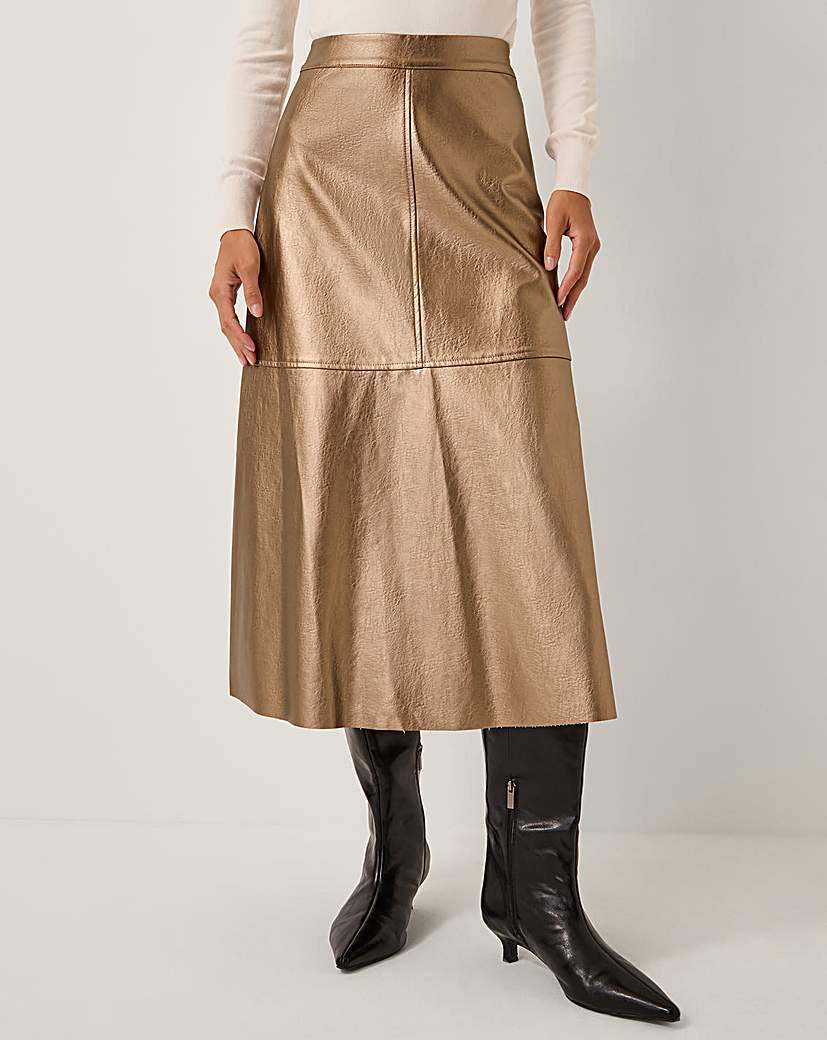 Monsoon Pippa Faux Leather Midi Skirt Bronze - Monsoon - Size: 10