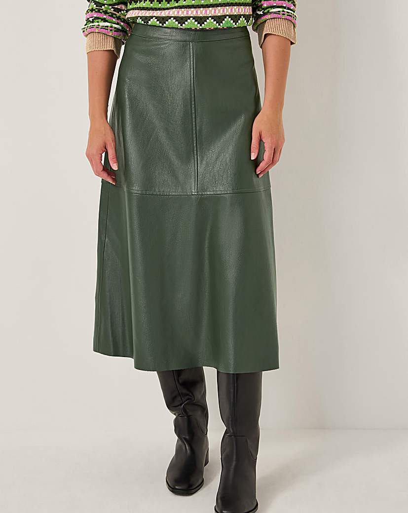 Monsoon Pippa Faux Leather Midi Skirt Green - Monsoon - Size: 24
