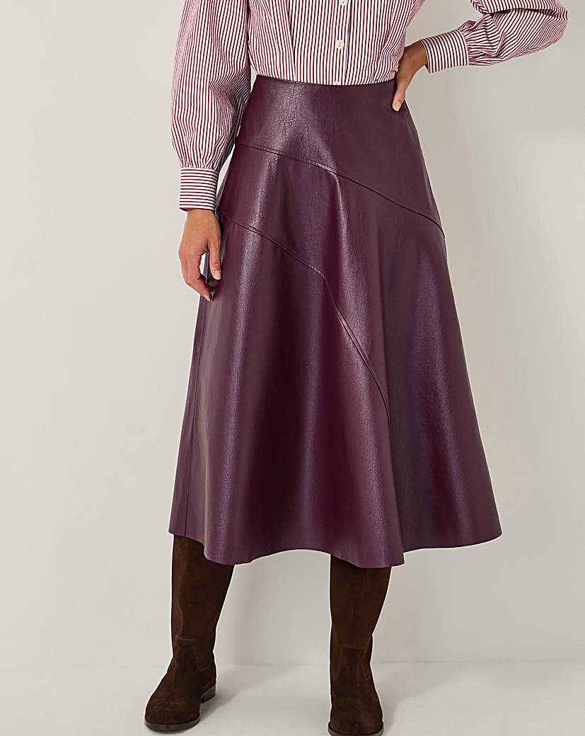 Monsoon Marnie Faux Leather Midi Skirt Burgundy - Monsoon - Size: 24