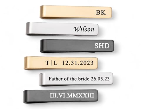 Fiona's Favourites Personalised Tie Clip Engraved for Men, Gift for Him, Groom, Groomsmen, Suit Accessories, Wedding, 48mm x 8mm, Silver, Gold, Black