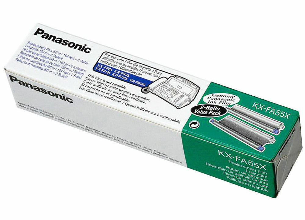 Original Panasonic KX-FA55X Black Ink Film Fax Machine Roll 2 Pack