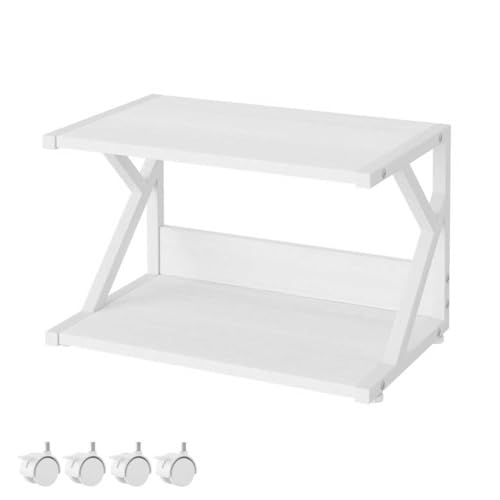 Garden 4 you 2 Tier Desktop Printer Stand,Under Desk Printer Trolley, Multi-Purpose Printer Cart Organizer,Wooden Storage Shelf with 4 Wheels for Folders,Books,for Fax Machine,Home Office (White)