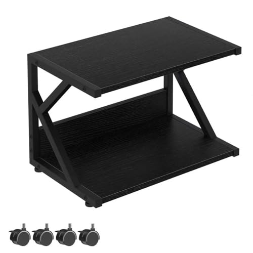 Garden 4 you 2 Tier Desktop Printer Stand,Under Desk Printer Trolley, Multi-Purpose Printer Cart Organizer,Wooden Storage Shelf with 4 Wheels for Folders,Books,for Fax Machine,Home Office(black)