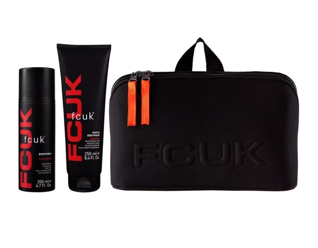 FCUK Sport Men’s Body Spray, Hair & Body Wash Toiletries Bag Gift Set