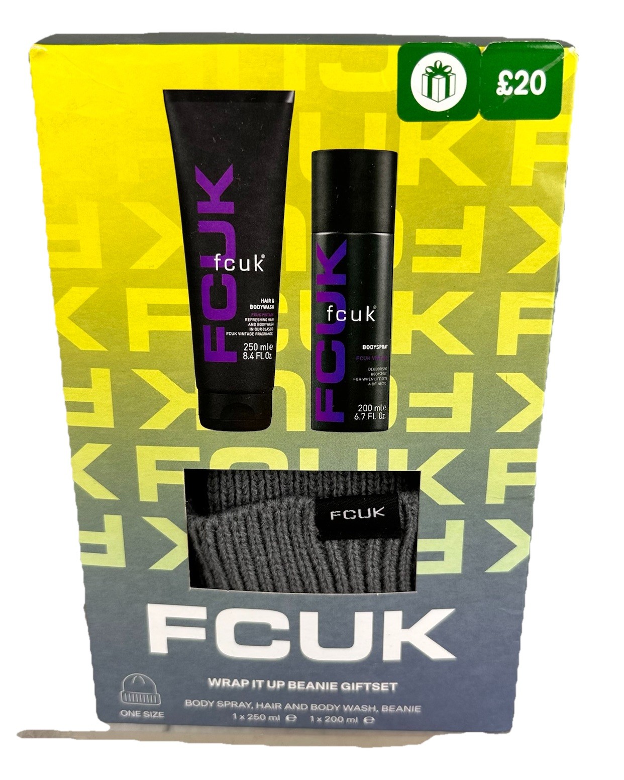 FCUK Wrap It Up Beanie Gift Set Body Wash Hair Body Spray Bodyspray Hat Boxed