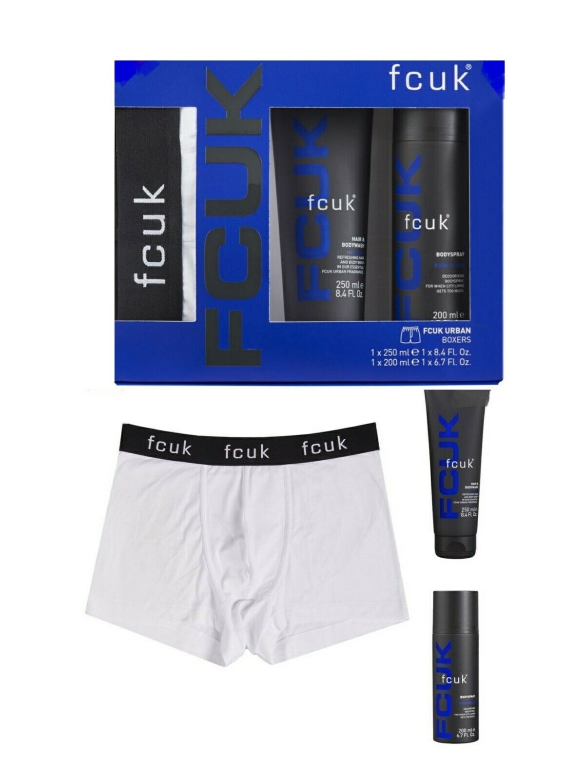 FCUK Urban 3pcs Gift Set Him – Boxers, Body Wash 250ml & Body Spray 200ml
