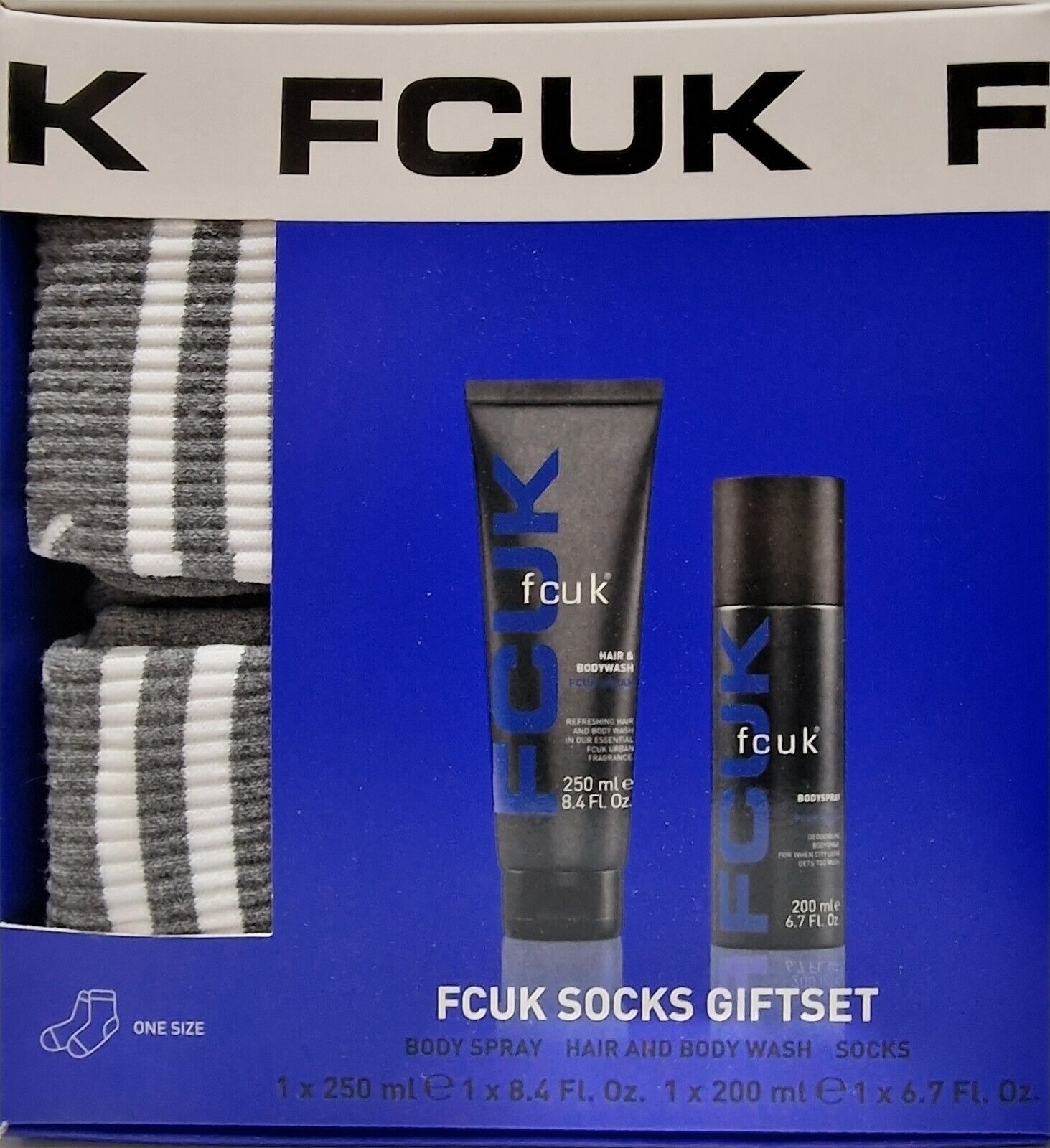 FCUK Urban Gift Set for Him Body Spray 200ml Hair Wash 250ml Socks 3pcs