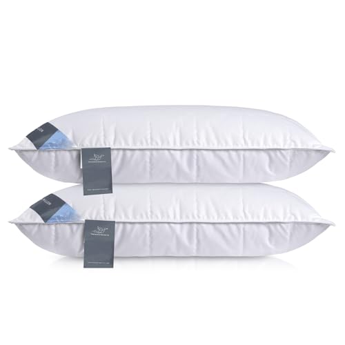 SUFUEE Luxury Goose Feather and Down Pillow Pair with 100% Cotton Cover (Standard(50% Down))