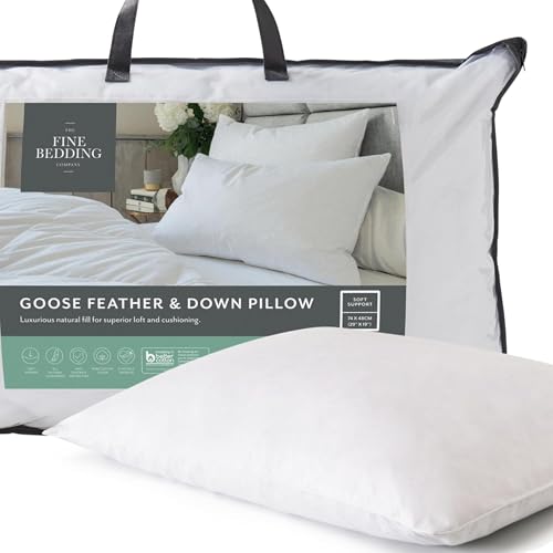 The Fine Bedding Company Goose Feather and Down Pillow – Ethically Sourced Sustainable Luxury Soft Pillow for Front and Back Sleepers, Machine Washable – Single (1 Pack)
