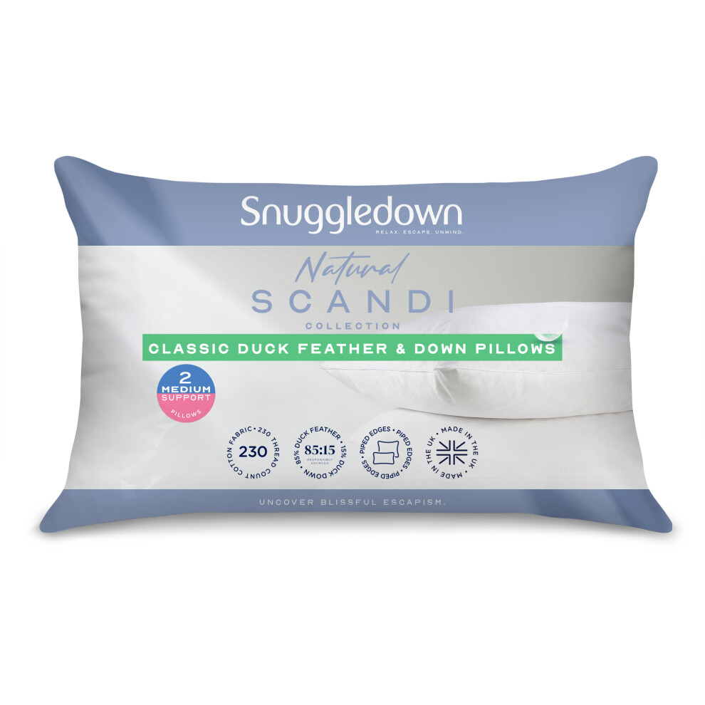 (Medium Pillow, 2 Pack) Snuggledown Scandi Duck Feather & Down Pillow UK Made